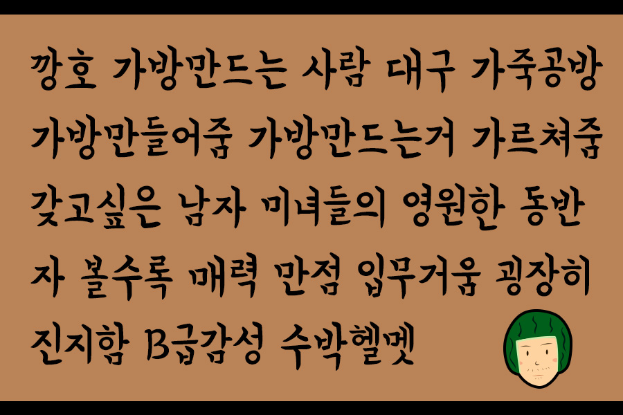 깡호 가방만드는 사람 대구 가죽공방 가방만들어줌 가방만드는거 가르쳐줌 갖고싶은 남자 미녀들의 영원한 동반자 볼수록 매력 만점 입무거움 굉장히 진지함 B급감성 수박헬멧