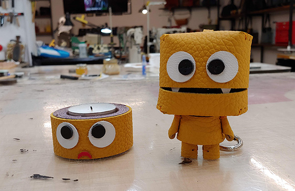 자투리 가죽을 활용한 인형이에요.