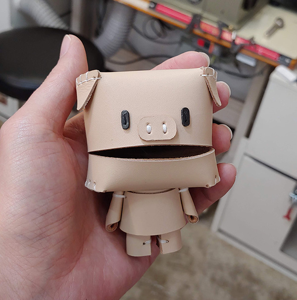 가방을 제작할때 사용되는 장식들로 활용해 눈, 코, 귀를 만들어 주었어요.
